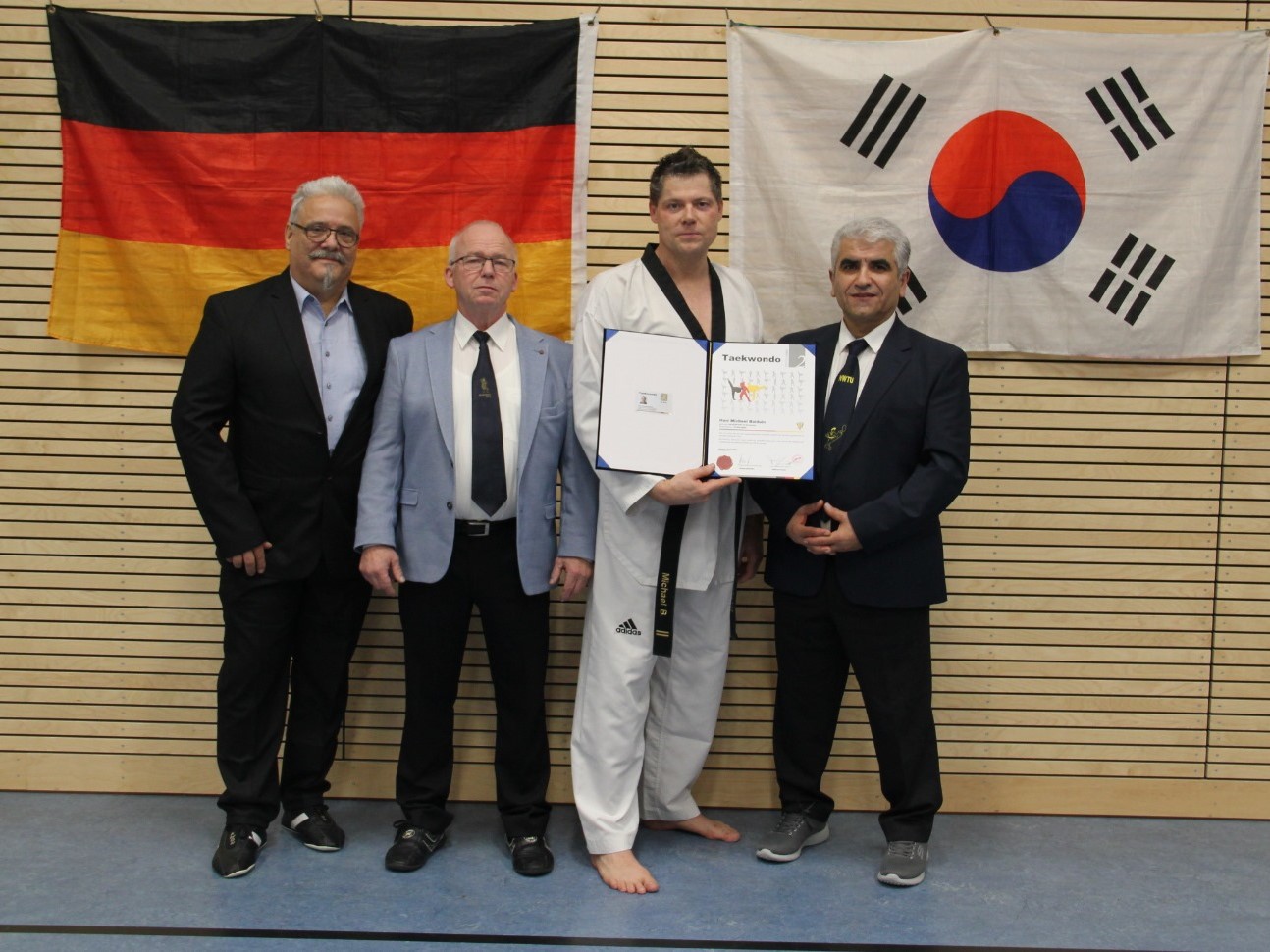 Die Prüfung war sehr anstrengend und fordernd. Nach fast zwei Stunden stand dann das Ergebnis fest: in allen Bereichen konnte Michael überzeugen und durfte dann, erschöft aber sicherlich glücklich und mit sich zufrieden die Glückwünsche und die Urkunde vom Prüfer Meister Sadettin Özdemir und den Beisitzern Meister Joachim Rust und Meister Luis Casielles entgegen nehmen.
