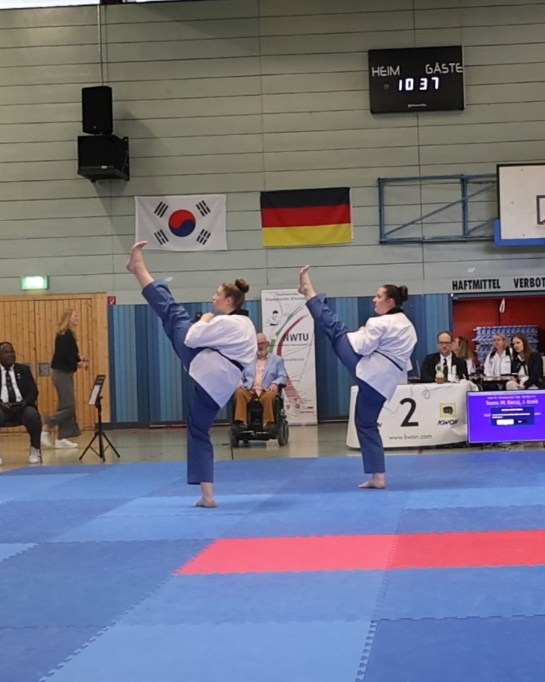 Michelle Gecaj und Jessica Kreit traten im Paar an. Das Ziel ist möglichst synchron eine Form zu laufen. In dieser Kategorie konnten die beiden die ersten Pokale ins Team holen (1. Platz).