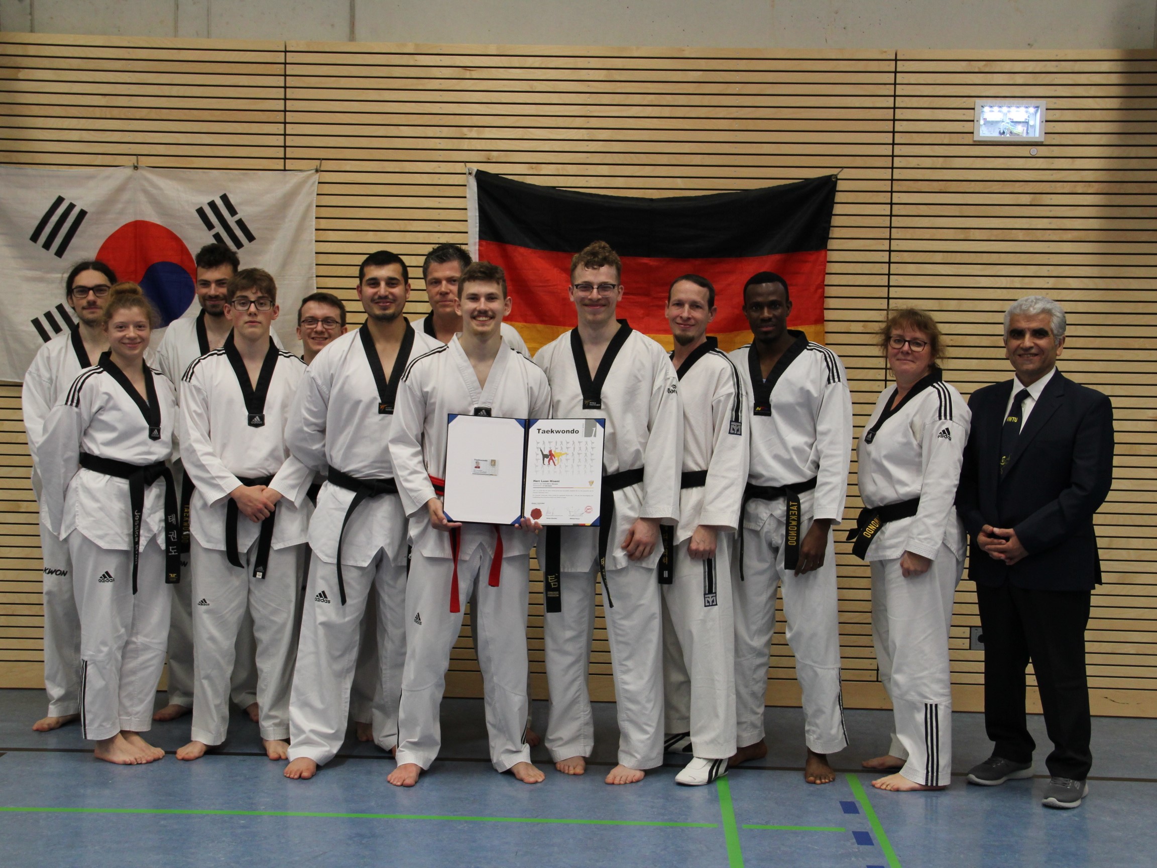 Luan Hiseni hat die Prüfung zum 1. DAN im Taekwondo bestanden und darf ab sofort den schwarzen Gürtel tragen. Die Freude war bei Luan und seiner Familie, sowie allen Anwesenden anzusehen, aber auch die Erleichterung, diesen langen Weg, der mit einem Dobok und weißem Gürtel begonnen hat, nach diesen vielen Jahren endlich zu Ende gebracht zu haben.