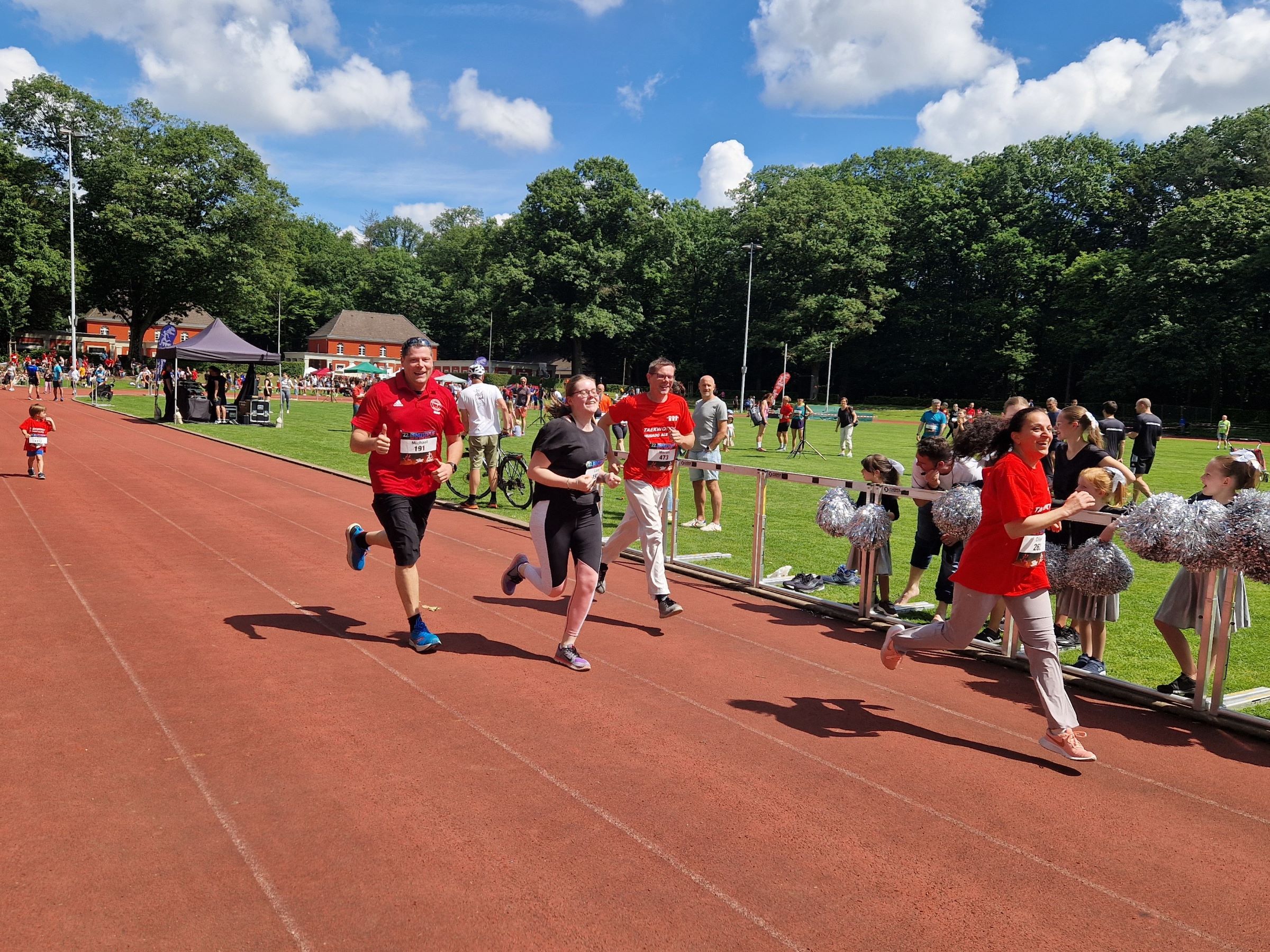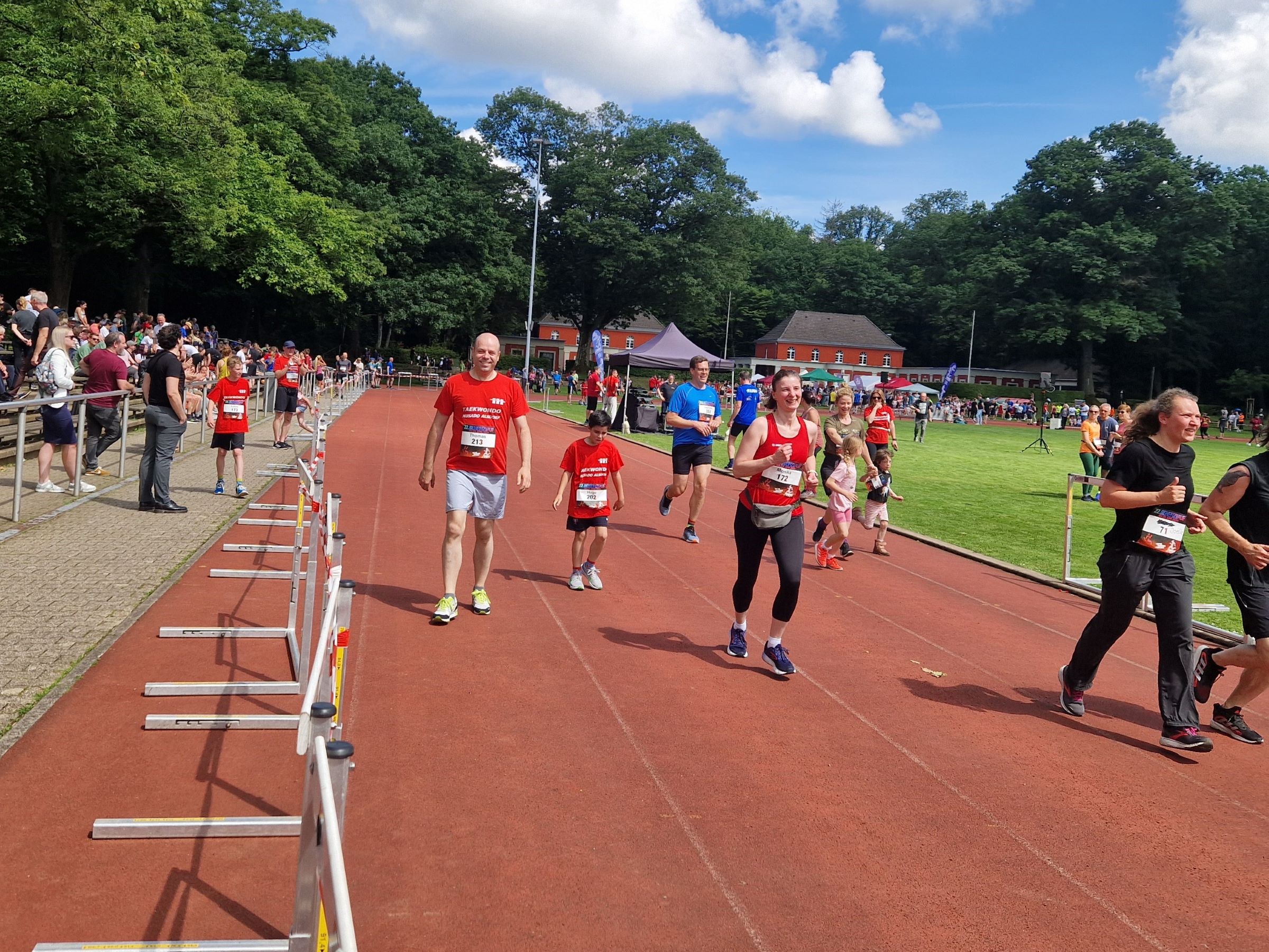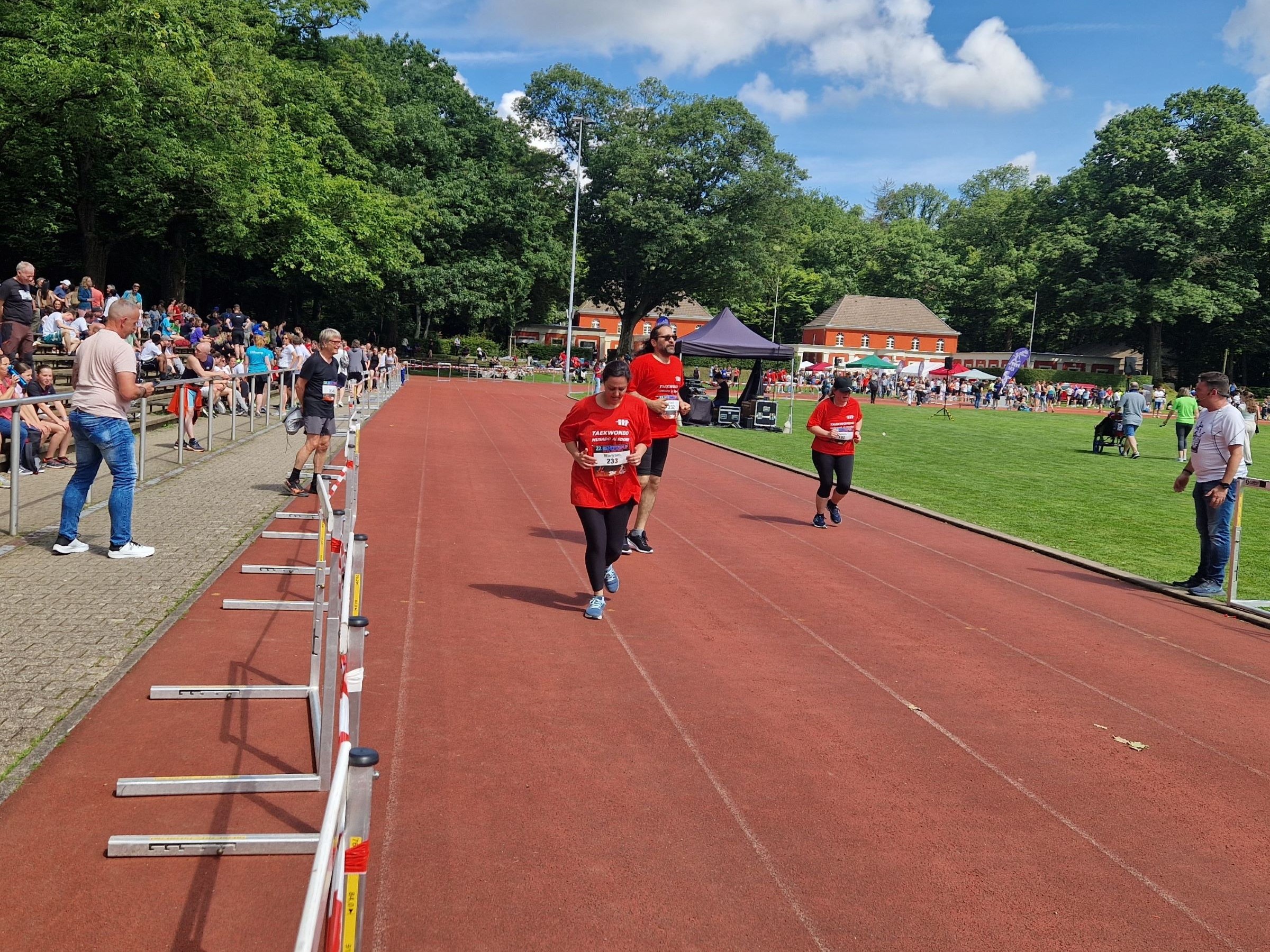 Daraufhin folgte um 11:15 Uhr der 3km lange Team-Lauf. Hierbei gingen 15 Teams aus jeweils 3 Musado Sportlern an den Start. Hierbei war es schön zu beobachten, wie die Teams sich gegenseitig unterstützt haben. Generell war die Stimmung super und der jeder hat jeden angefeuert.