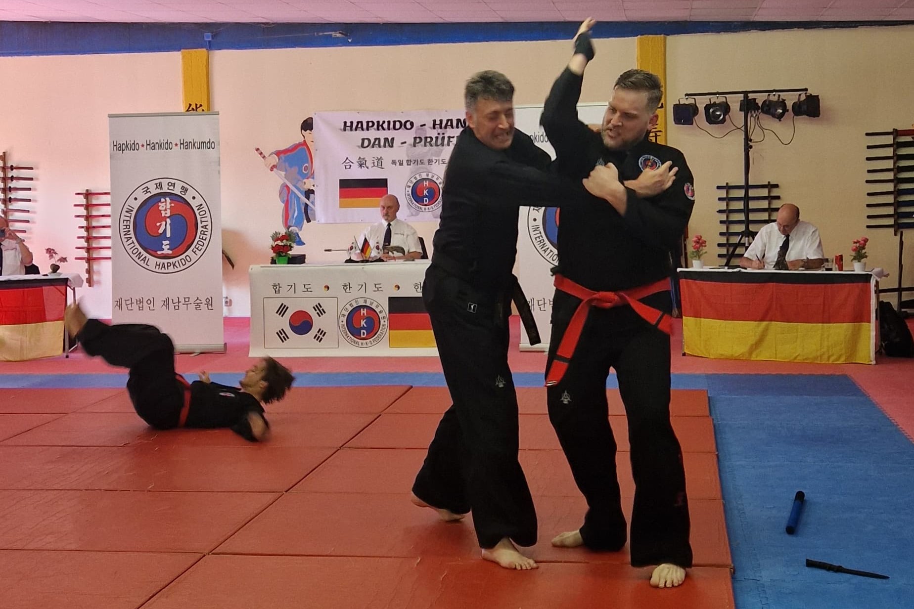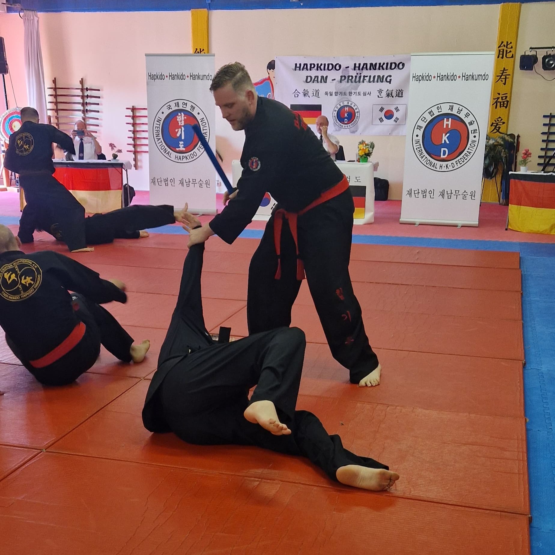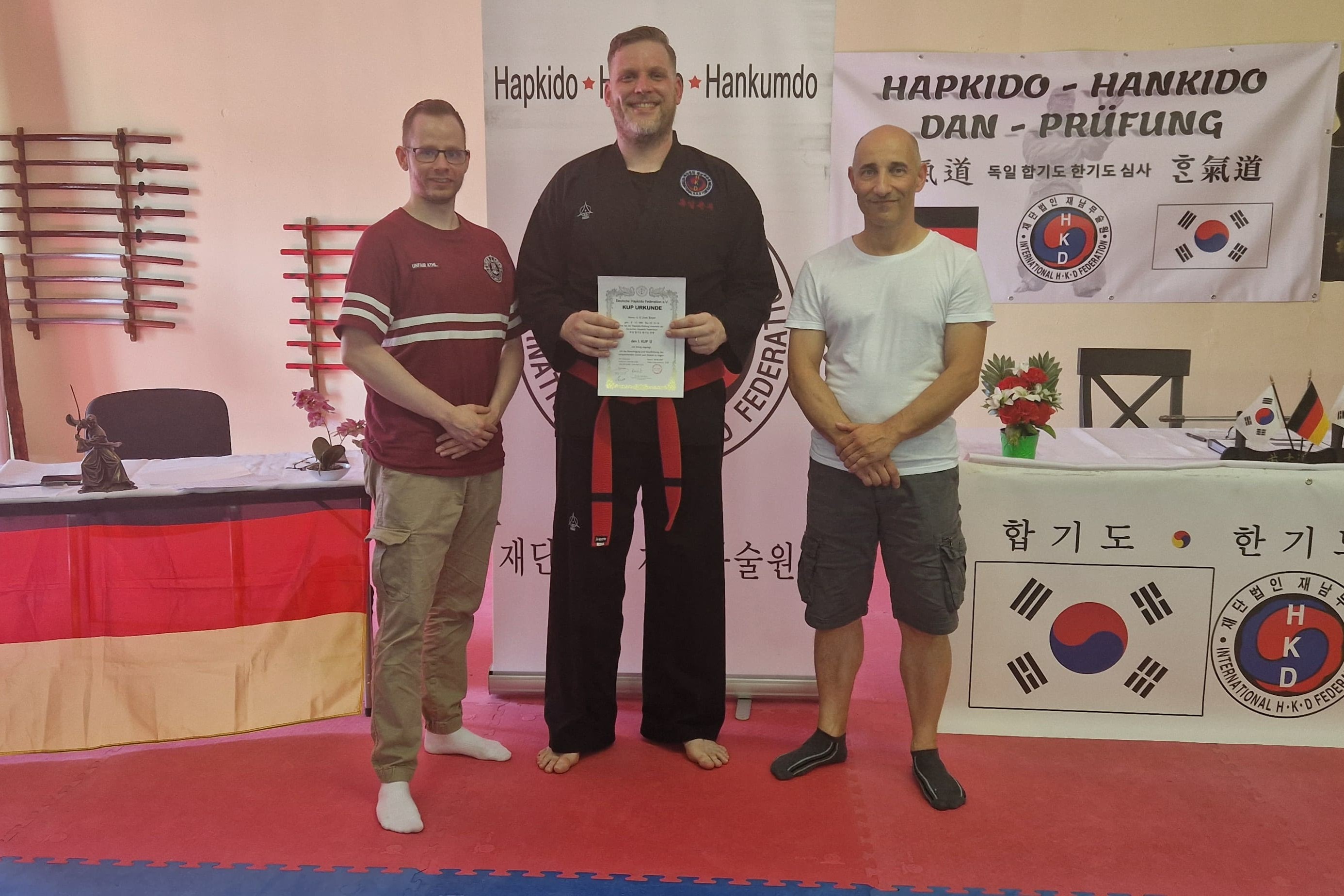 Die Abnahme erfolgte durch ein hochrangiges dreiköpfiges Prüfergremium, bestehend aus dem Präsidenten der Deutschen Hapkido Federation, Großmeister Josef Römers (8. Dan Hapkido), sowie Großmeister Wolfgang Roszik (5. Dan Hapkido) und Meister Detlef Fischer (4. Dan Hapkido).