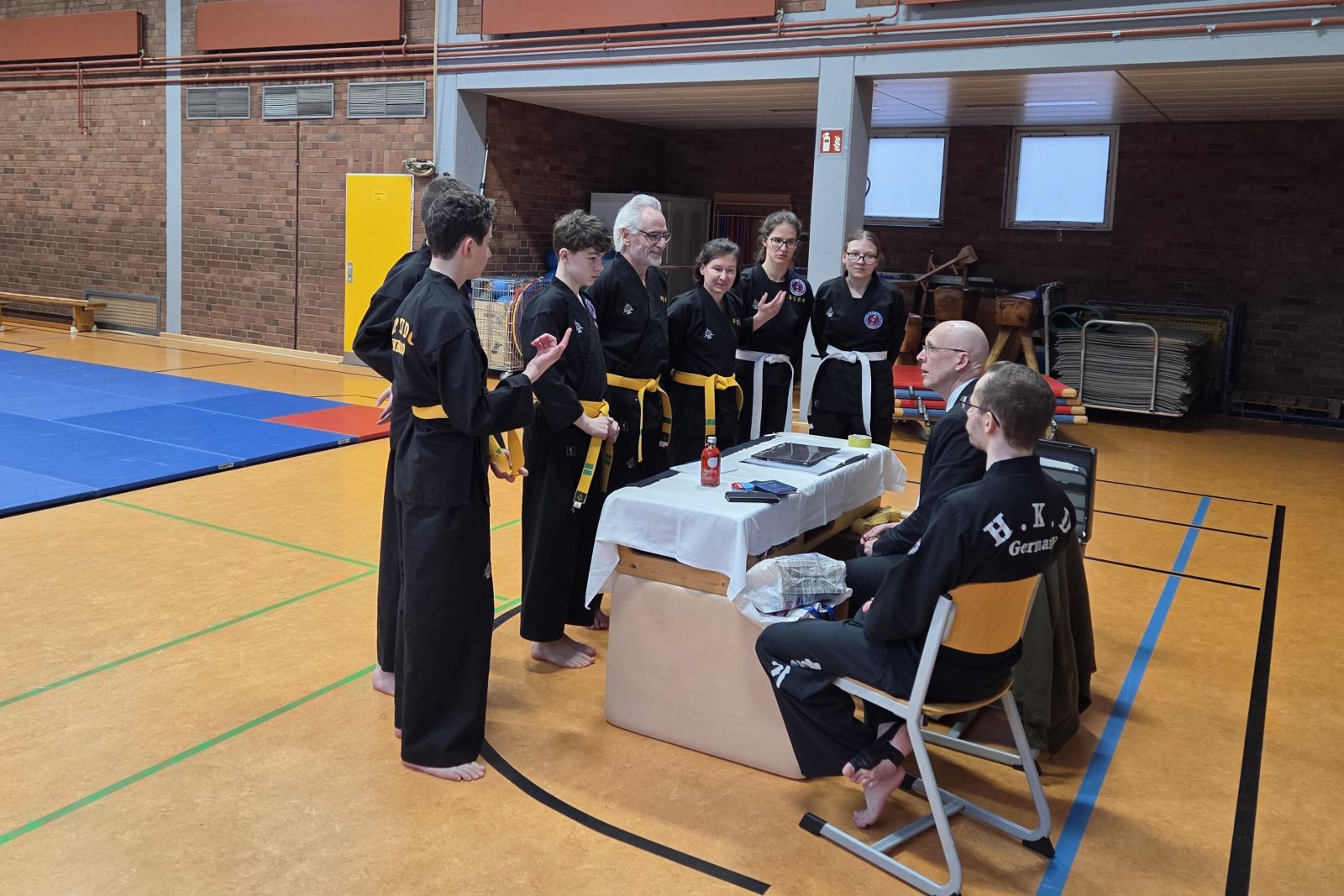 Die Prüfungsleitung übernahm der Vizepräsident der Deutschen Hapkido Federation, Großmeister Marcel Bassiner (6. Dan Hapkido, 5. Dan Taekwondo).