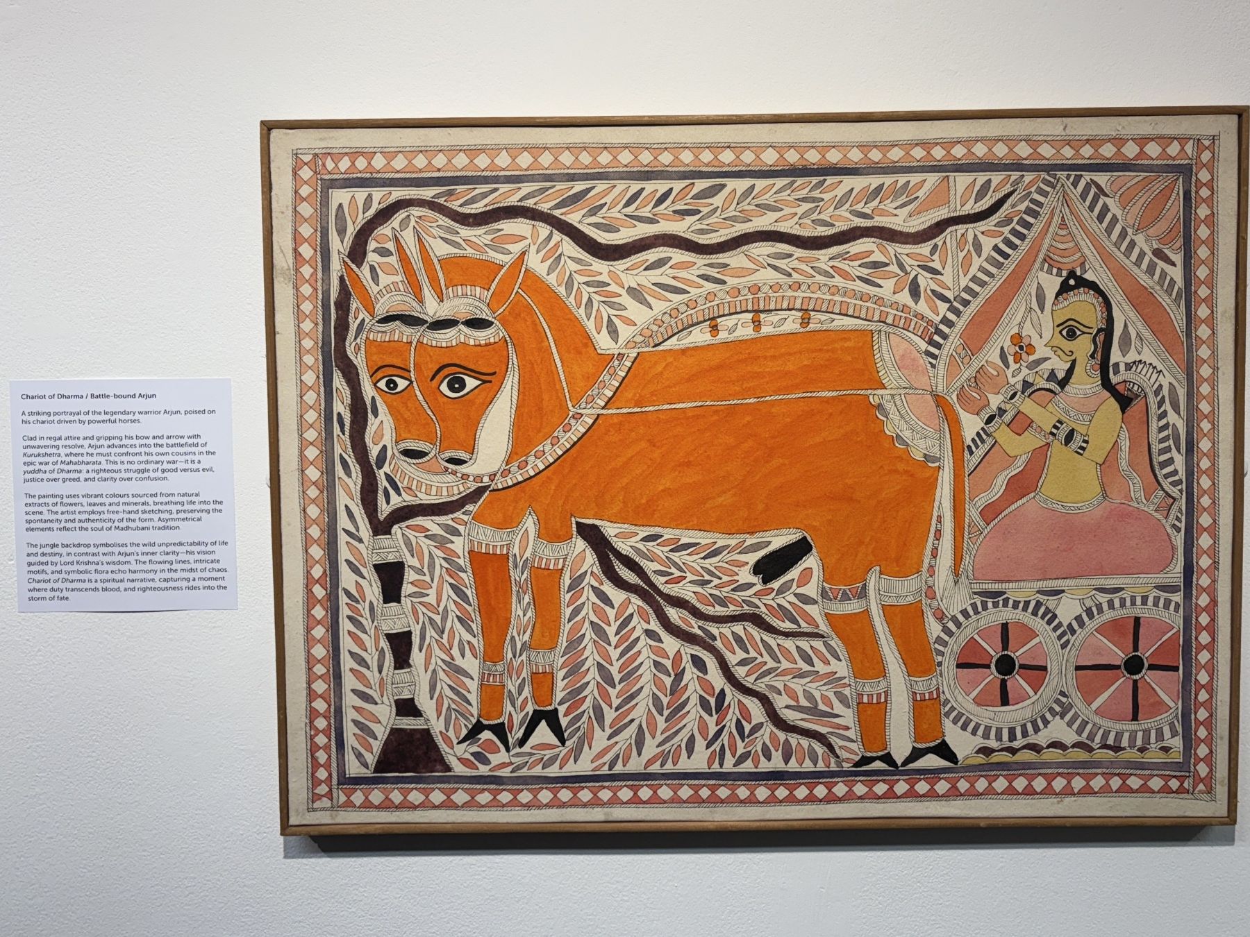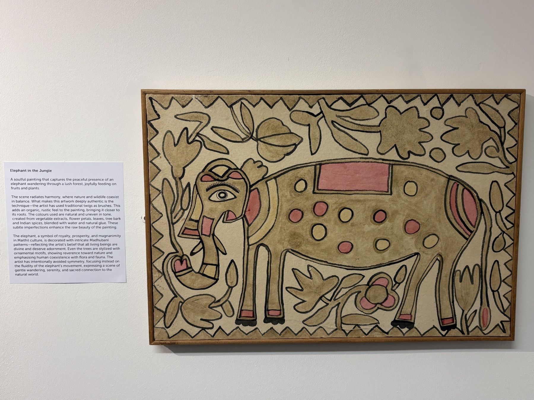 Ich habe hier zwei Kreativworkshops gegeben. Das eine war ein Projekt, das außerhalb der Bibliothek stattgefunden hat. Ich habe mit meiner Betreuerin und einer weiteren Freiwilligen einen Workshop zu Madhubani-Gemälden (traditionelle indische Volkskunst) gemacht. In der Bibliothek gibt es dazu eine Ausstellung.